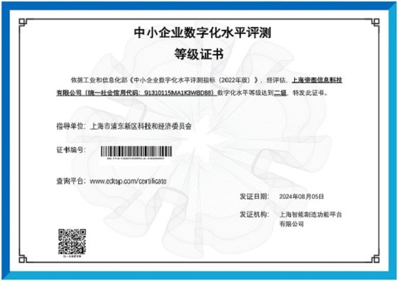 數字化征程新突破:帝圖科技榮獲二級證書
